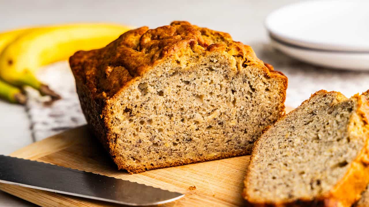 Use up those overripe bananas sitting on the counter and turn them into a delicious loaf of banana bread. You only need 8 other ingredients and you probably already have them on hand. This easy-to-follow recipe delivers a perfectly moist and flavorful loaf every time. Enjoy it plain, add in chopped nuts or chocolate chips, or turn it into mini loaves for gifting.