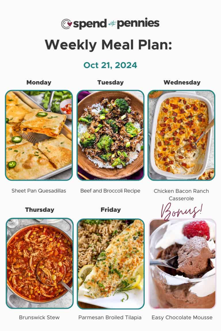Dinnertime just got a whole lot easier! With this premade meal plan take the stress out of meal time. Save time and money while being inspired to try new recipes!