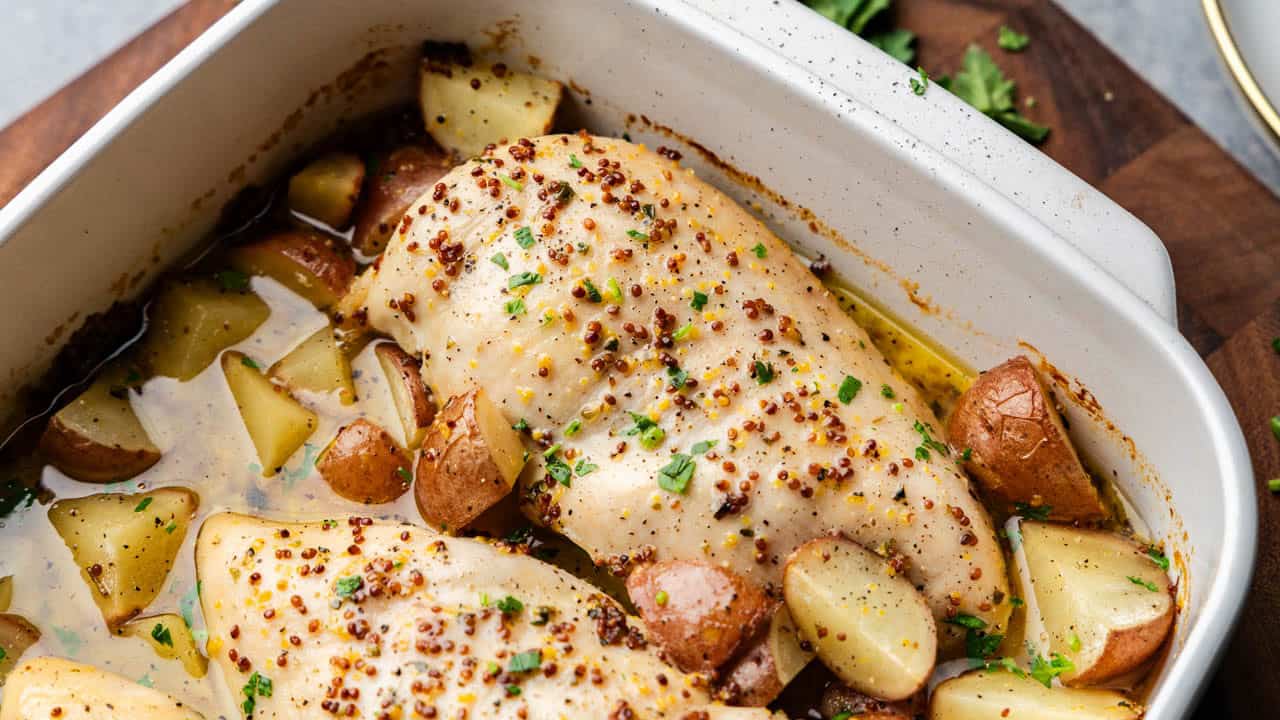 We took our deliciously addictive Honey Roasted Smashed Potatoes and turned it into a complete meal. The sauce is absolutely killer! We use whole grain Dijon mustard for texture and for taste—it really makes this dish special.