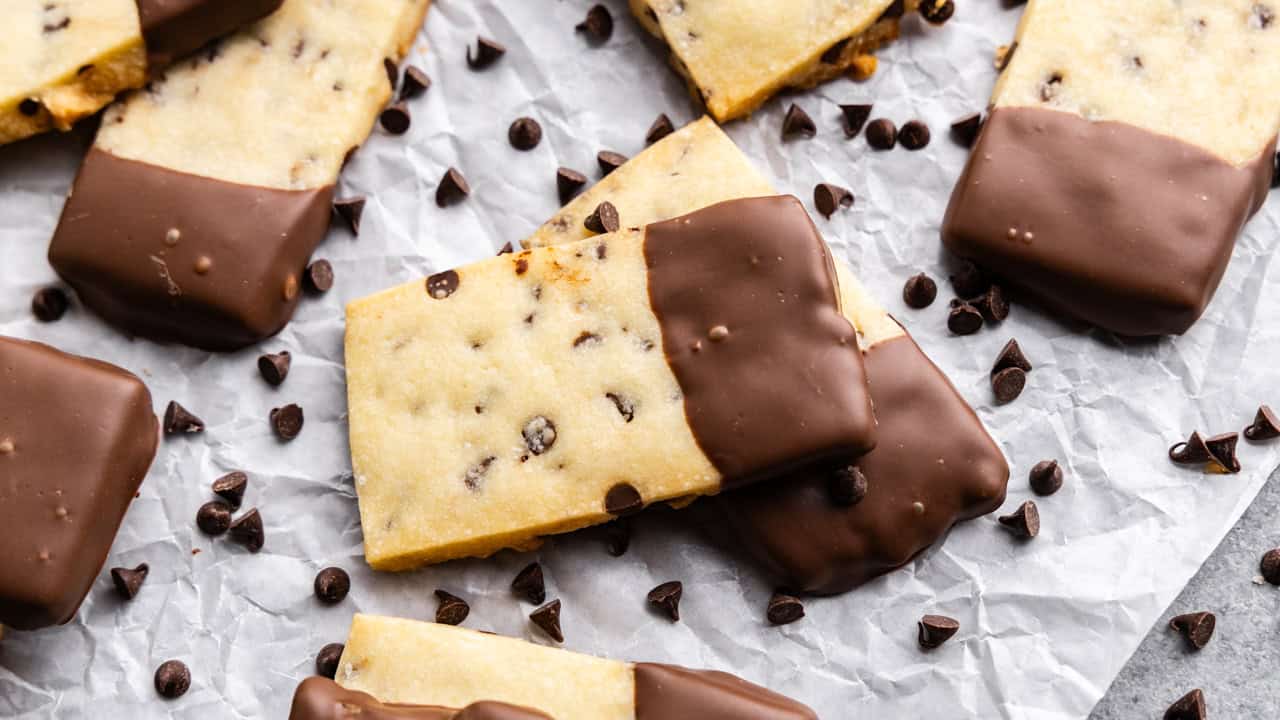 These buttery melt-in-your-mouth shortbread cookies are loaded with mini chocolate chips and dipped in extra chocolate—because who wouldn’t want more chocolate? They’re so good that you’ll find yourself making them again and again.