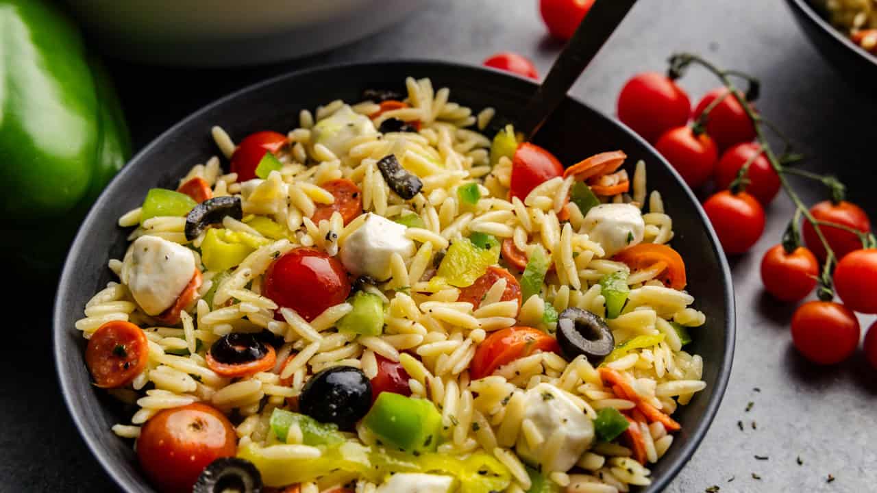 This twist on a classic Italian pasta salad is a game changer. The orzo pasta gives this salad the perfect bite and texture. Plus, it’s loaded with crisp veggies and an easy homemade vinaigrette dressing.